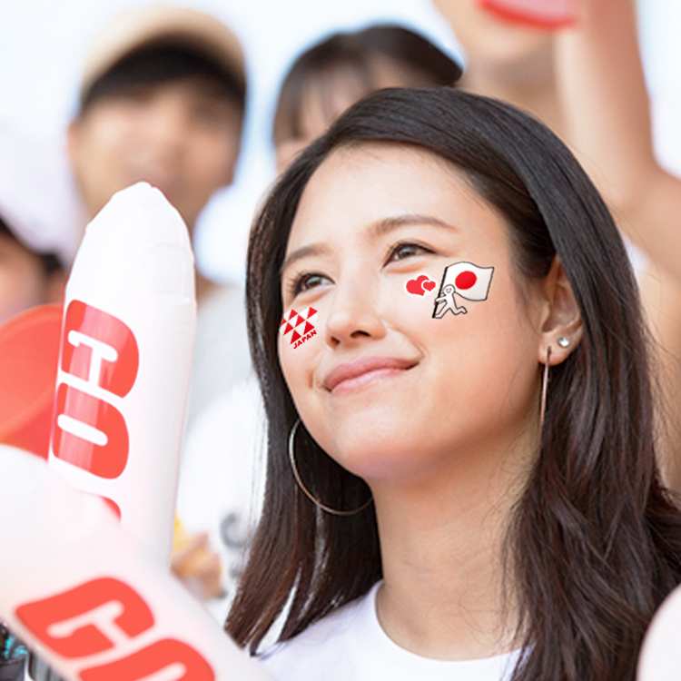 - 日の丸フェイスシールを貼って、日本代表チームを応援しましょう!